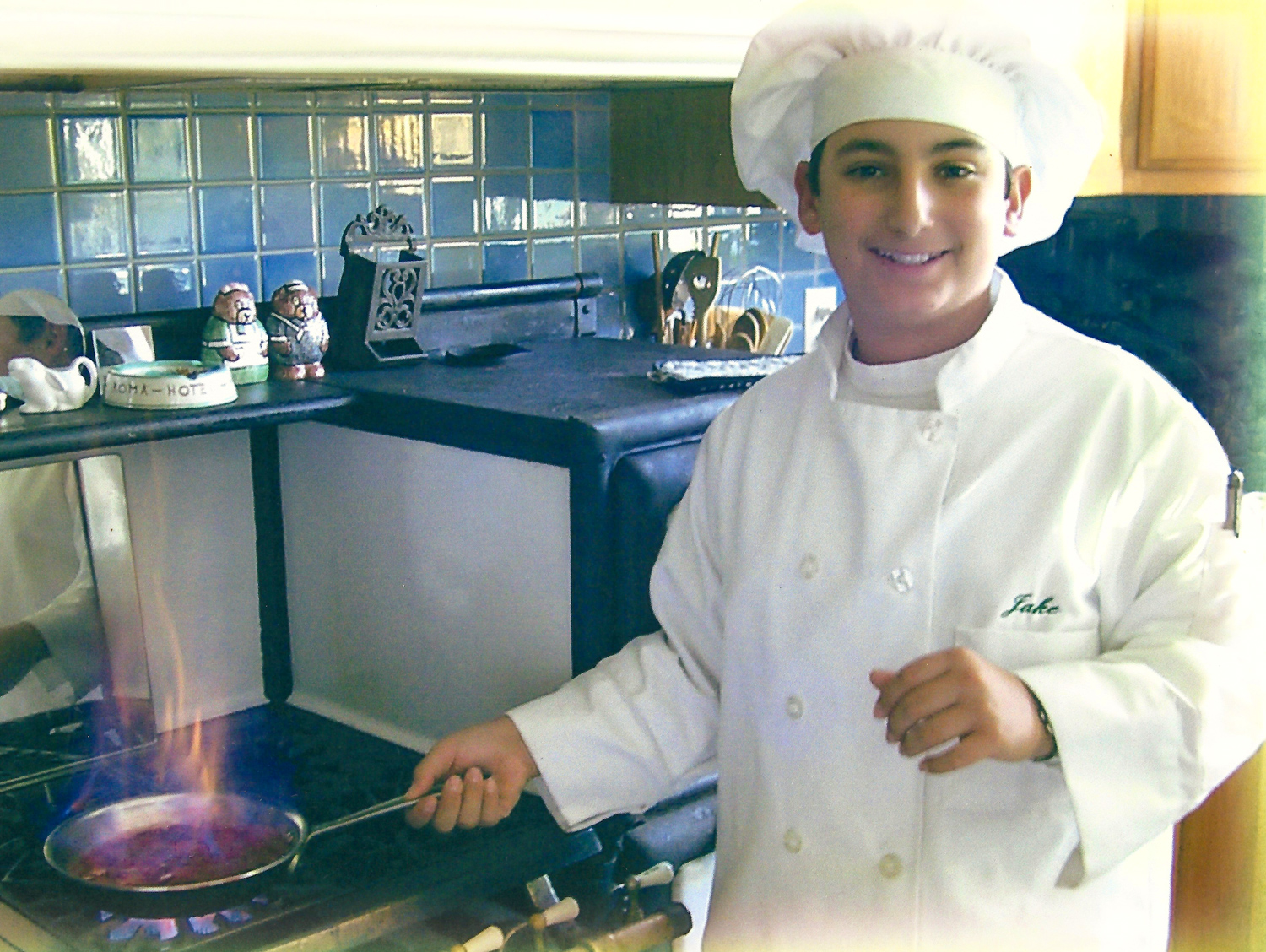 graduation picture, happily flambéing strawberries. In some odd way, that stove was part of our family.
